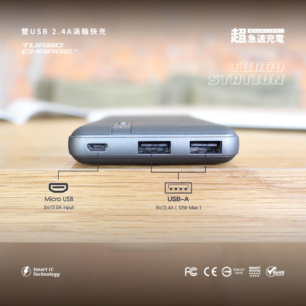 ◆ 雙孔USB 2.4A渦輪快充輸出、5V/2A輸入讓你快速充電