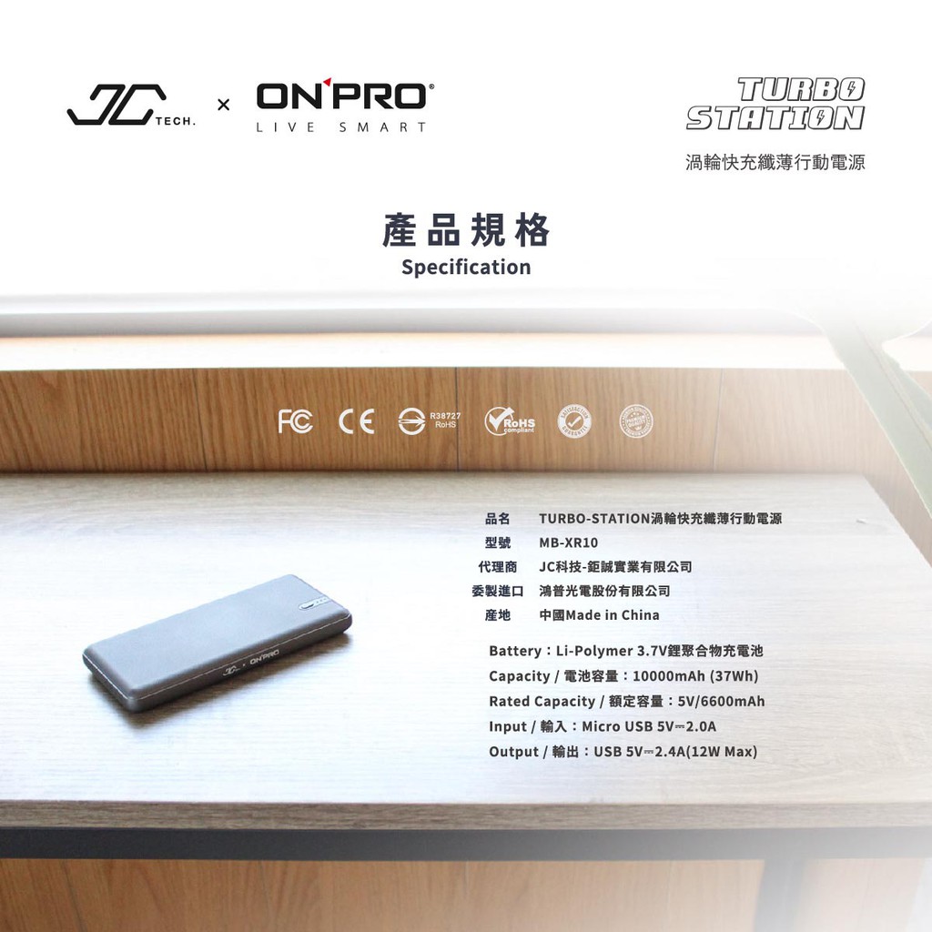 【JC TECH】TURBO-STATION渦輪快充纖薄行動電源10000mah-ONPRO聯名款