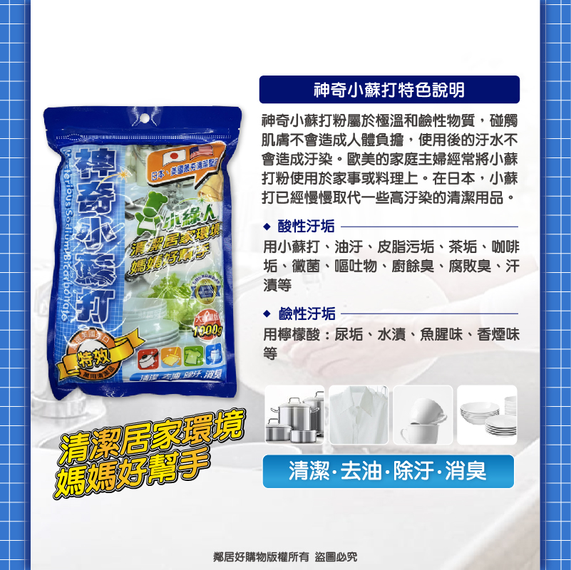 【小綠人】神奇小蘇打粉1000g-特級