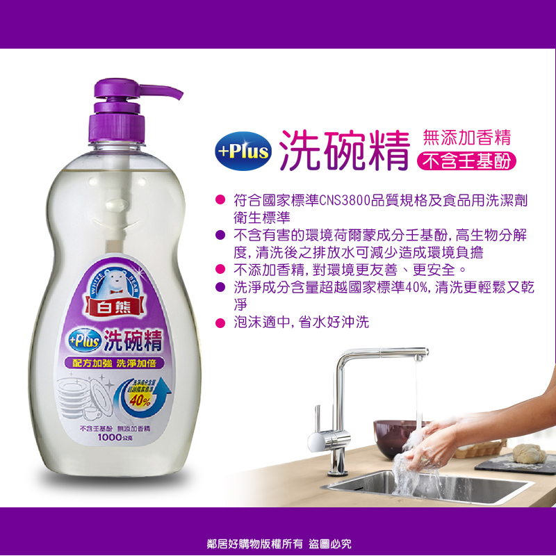 - 符合國家標準CNS3800品質規格及食品用洗潔劑衛生標準。