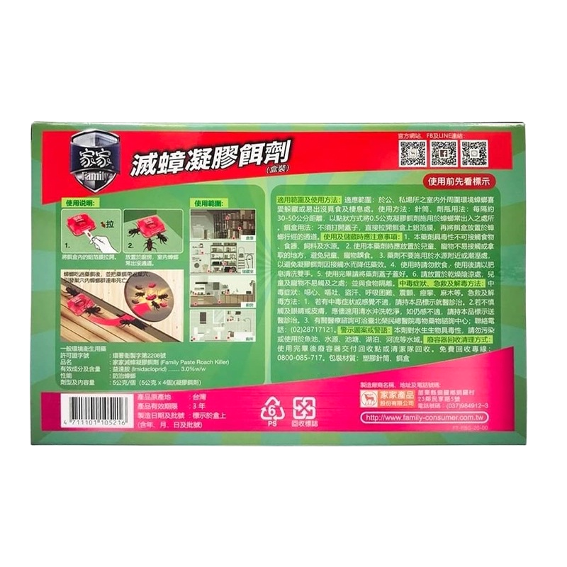 品名:家家滅蟑凝膠餌劑