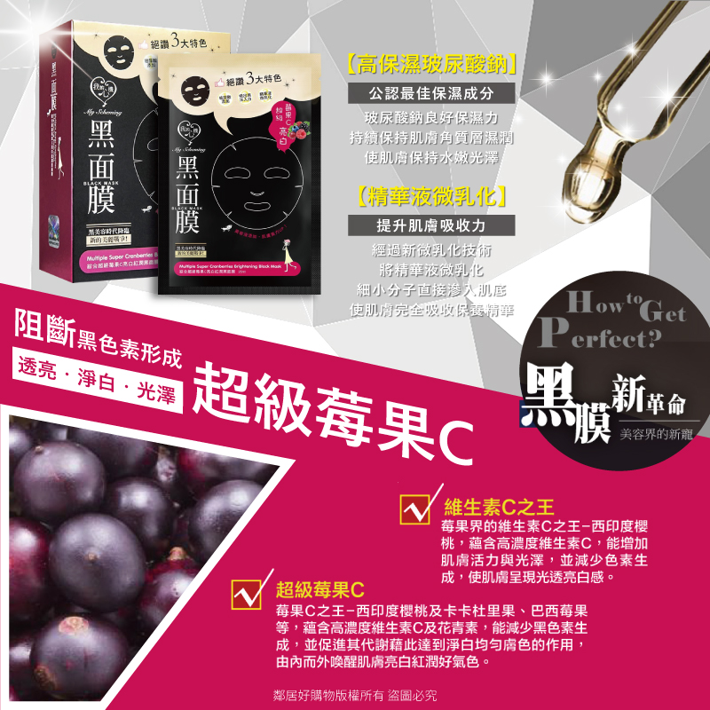 【我的心機 】經典黑面膜系列8pcs-綜合超級莓果C亮白紅潤