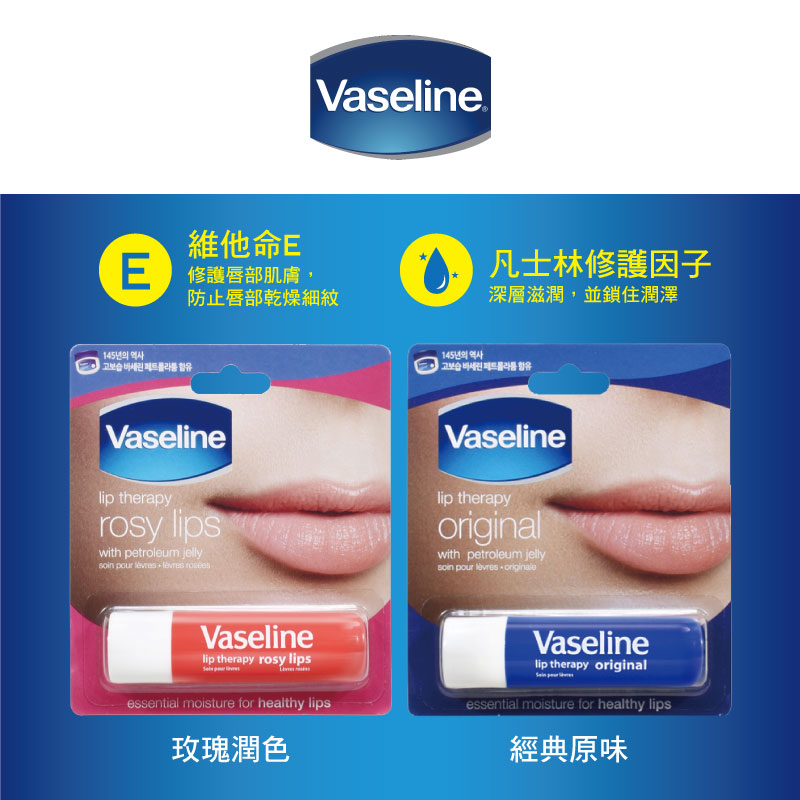 Vaseline 凡士林經典原味/玫瑰潤色護唇膏 4.8g