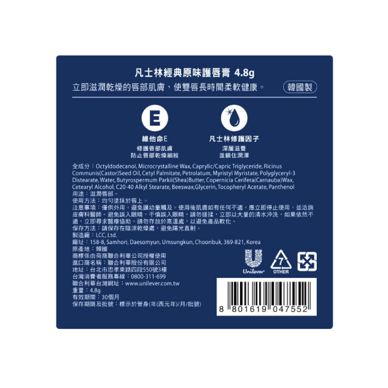 凡士林修護微因子,有效修護雙唇 長效修護唇部 凡士林修護微因子,不黏膩質地 不刺激肌膚、不致敏配方