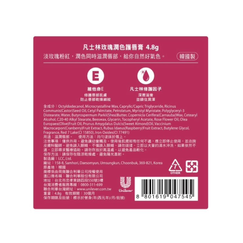 淡淡粉紅潤色,給你自然好氣色! 長效滋潤修護唇部肌膚 凡士林修護微因子,不黏膩質地 不刺激肌膚、不致敏配方