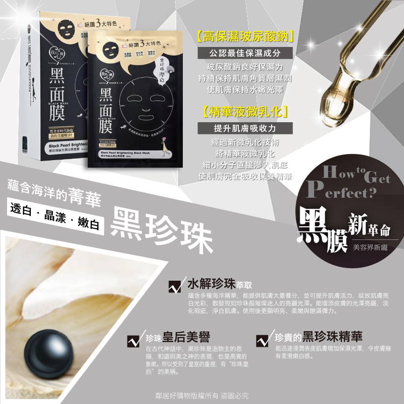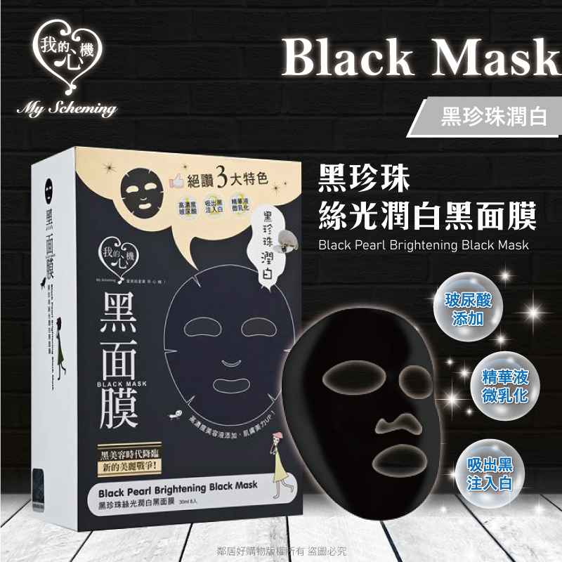 【我的心機】經典黑面膜系列8pcs-黑珍珠絲光潤白