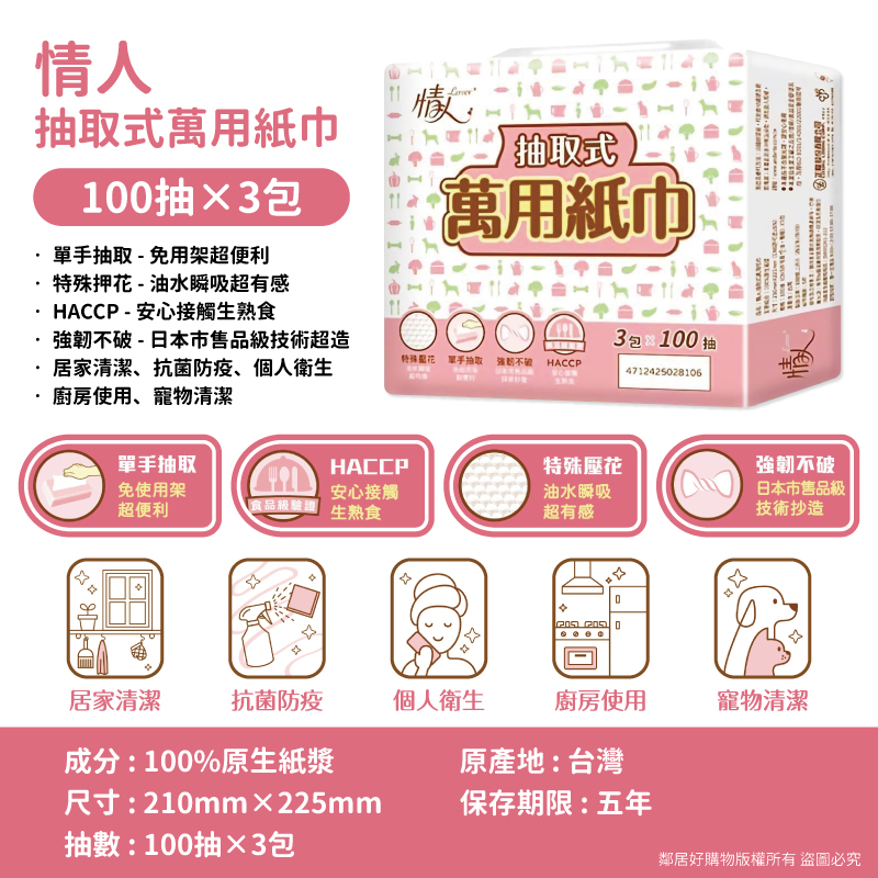 【情人】抽取式萬用紙巾(100抽×3包/串)