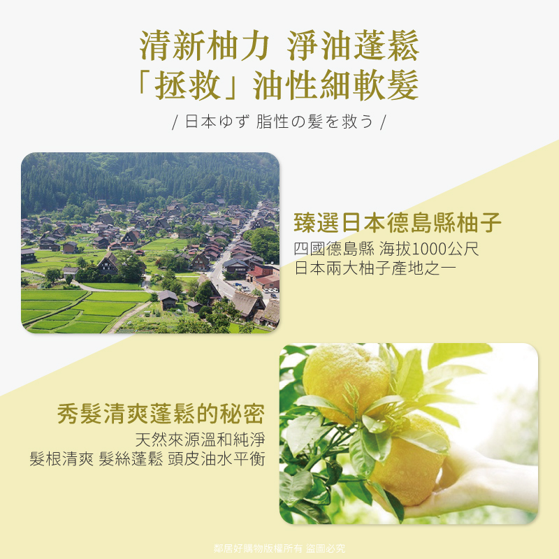 ◆ 絲蘊控油蓬鬆系列,萃取天然日本柚子成分