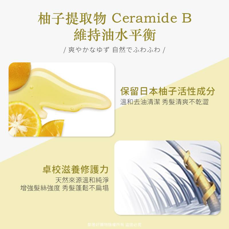 ◆ 日本柚子:嚴選日本德島縣柚子萃取,富含維生素營養,滋潤髮絲