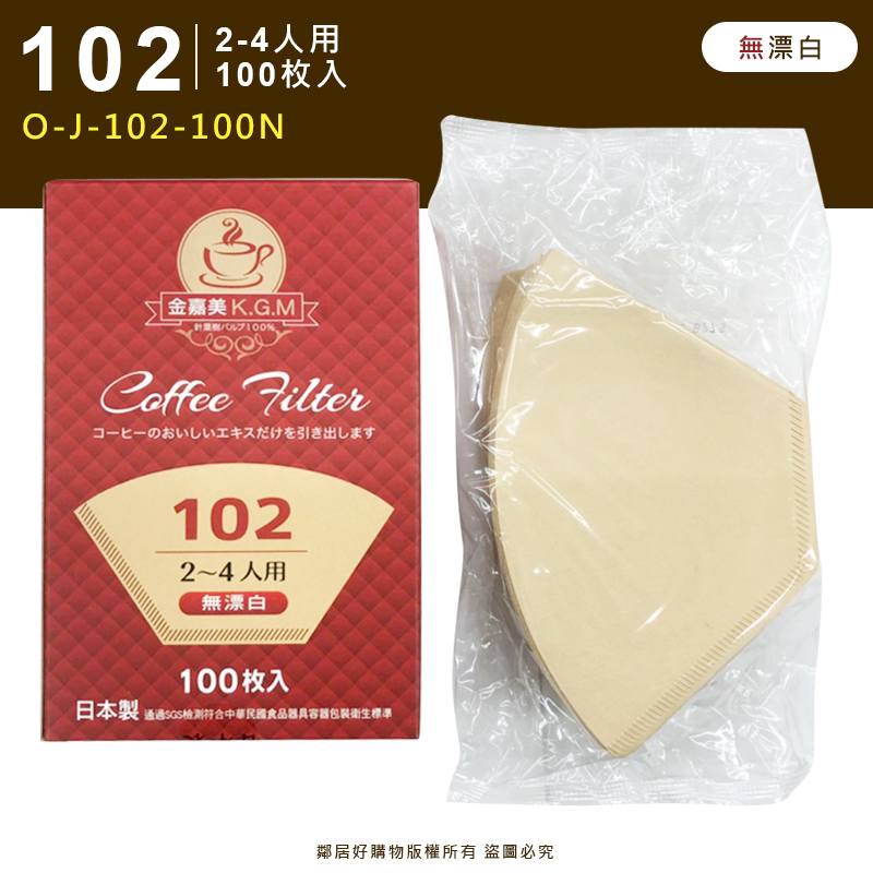 K.G.M金嘉美 咖啡濾紙-102(2-4人用)100枚入-無漂白