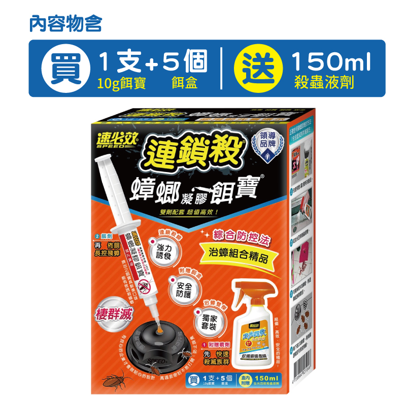 【速必效】蟑螂凝膠餌寶 內附10克餌寶+5個容器盒送150ml四效殺蟲液劑