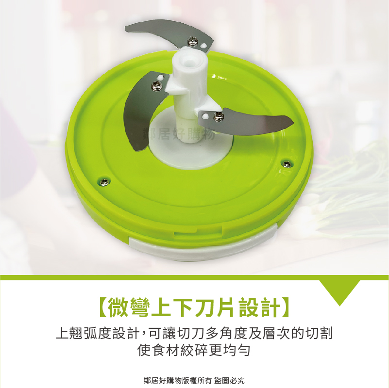 • 微彎上下刀片設計:上翹弧度設計,可讓切刀多角度及層次的切割
