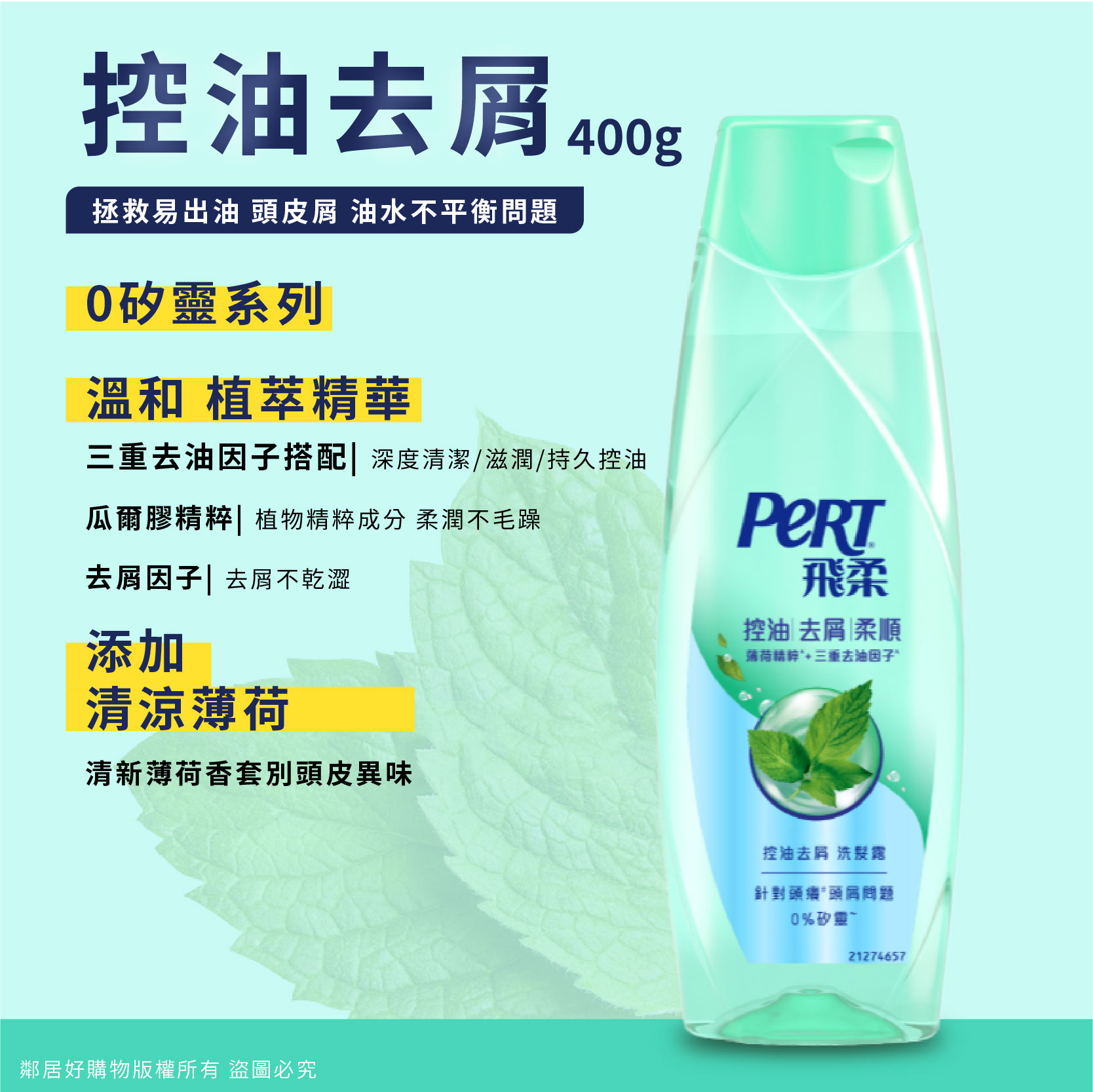 ●添加3重去油分子甄選薄荷精萃,零矽靈配方