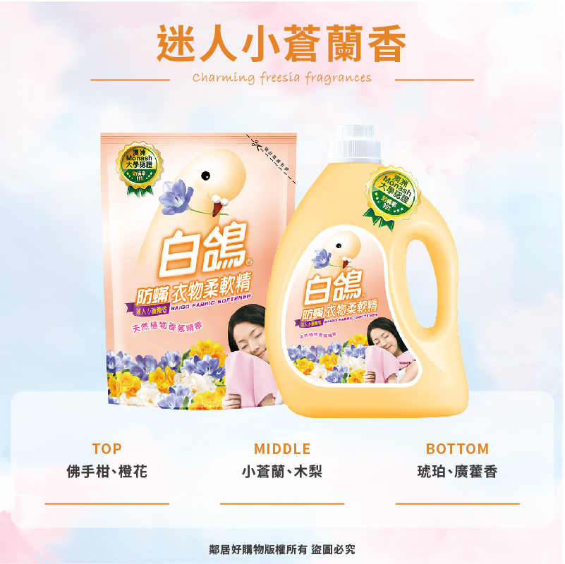 【白鴿】防螨衣物柔軟精-迷人小蒼蘭