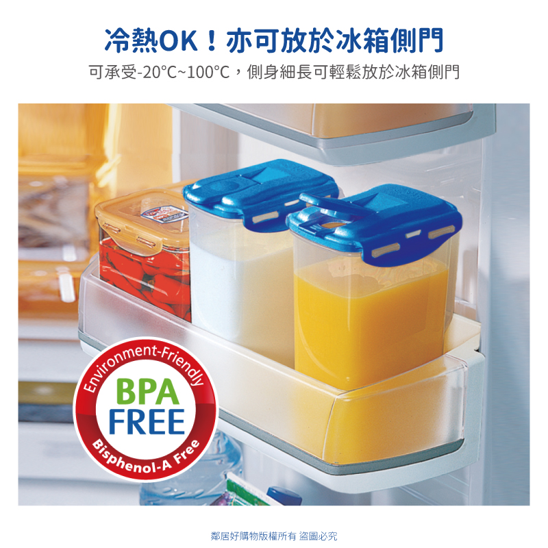 可承受-20℃~100℃,側身細長可輕鬆放於冰箱側門