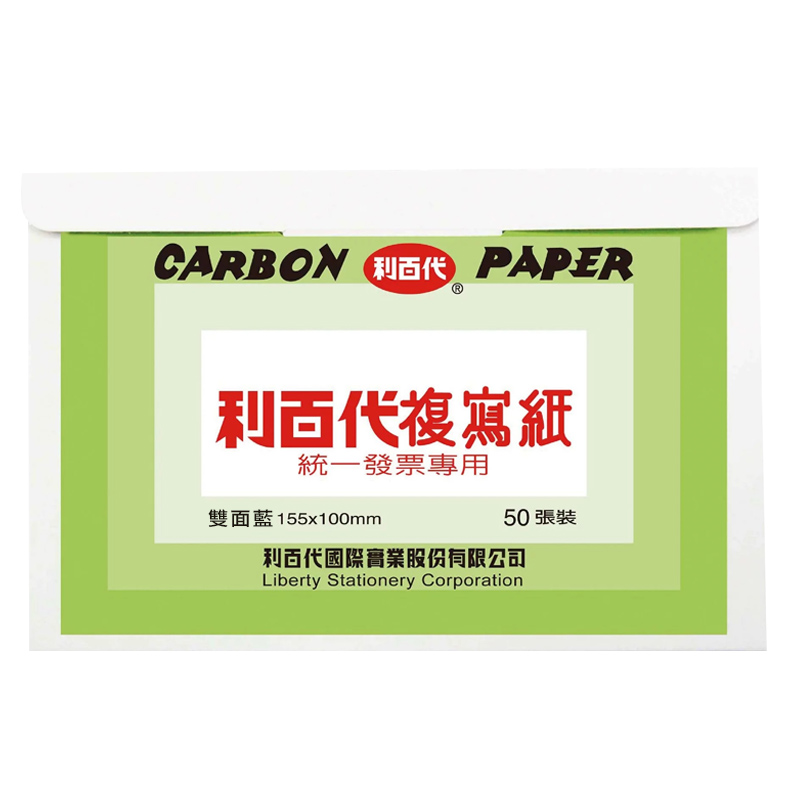 利百代50張入發票用複寫紙是專供手寫開立發票使用的複寫紙,百分百台灣製造,老字號品質有保證,複寫紙尺寸為155x100mm,大小適中,有分單面與雙面兩種,顏色亦有藍、黑兩種,一夾為50張。可依據需求,挑選適合的品項。