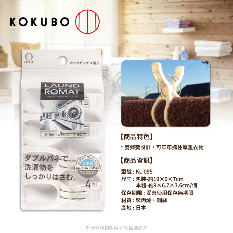 【KOKUBO小久保】LAUND ROMAT 雙彈簧晾衣夾4入