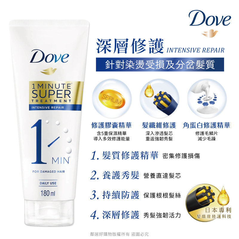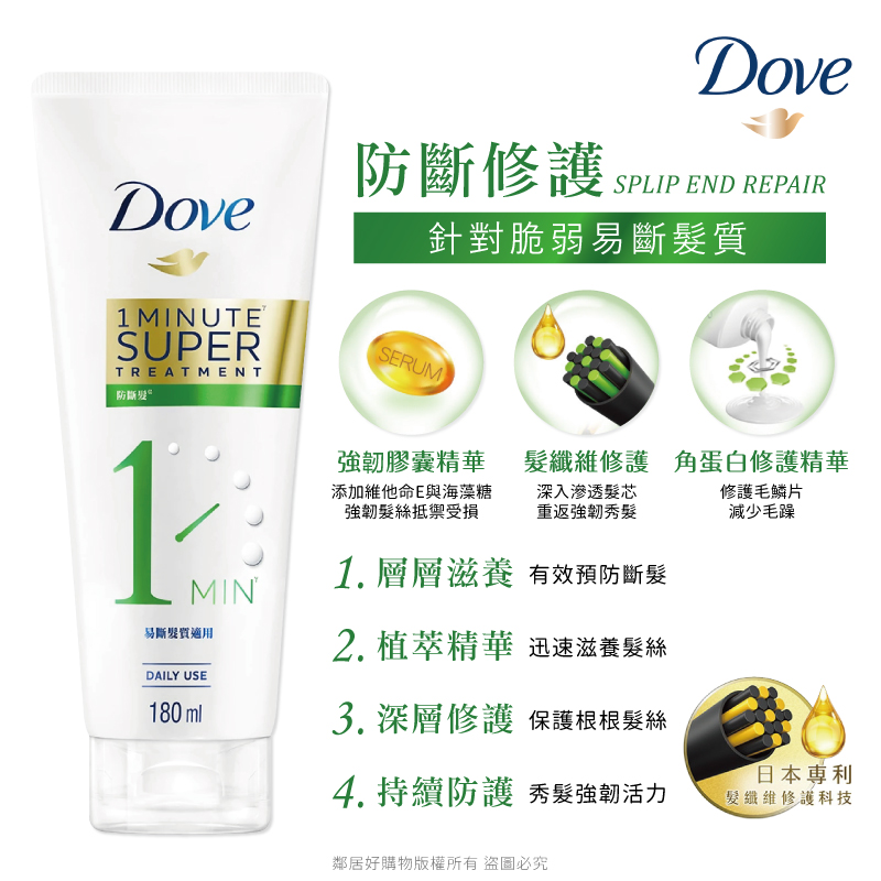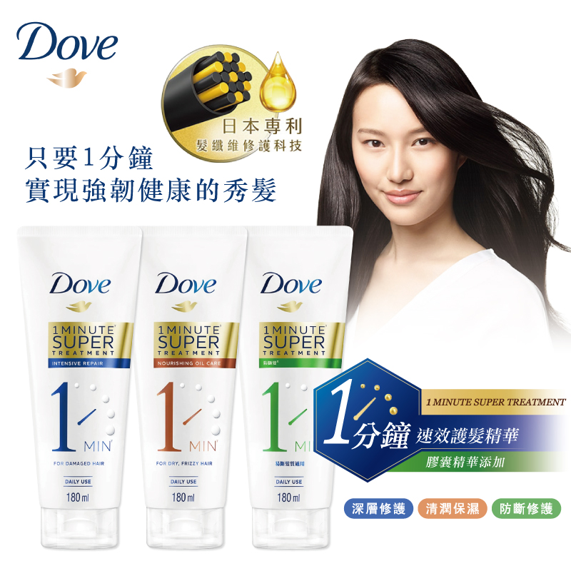 【Dove多芬】一分鐘護髮精華180ml-(深層修護/輕潤保濕/防斷修護)