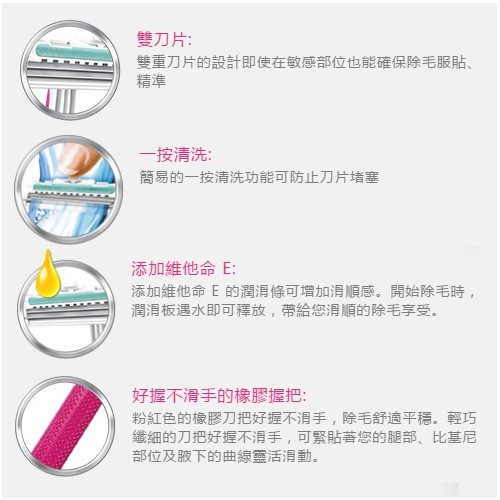 ● 雙刀片敏感部位也能確保除毛服貼精準