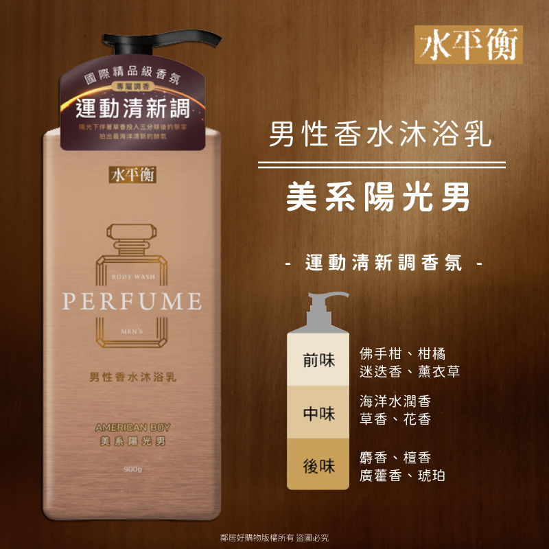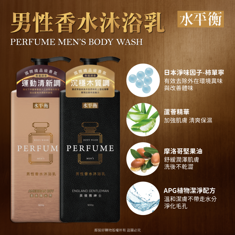 【水平衡】男性香水沐浴乳900g(美系陽光男/英倫雅紳士)