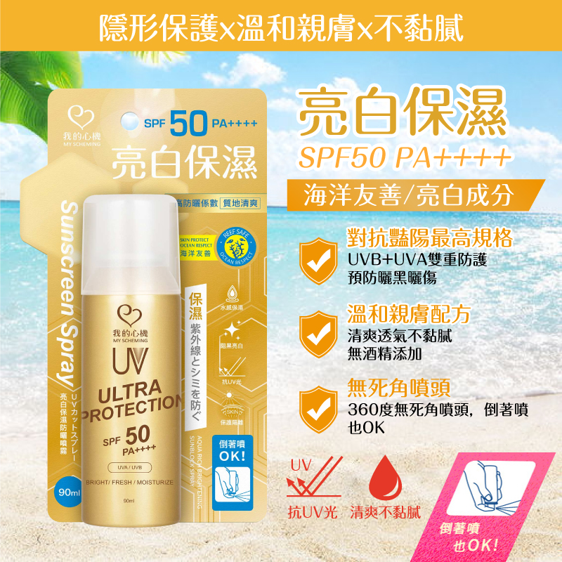 【我的心機 】亮白保濕防曬噴霧SPF50 PA++++ 90ml-海洋友善