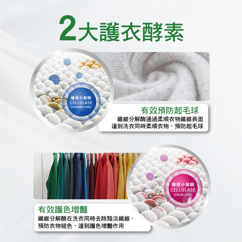 搭配強效潔淨技術,輕鬆分解衣物頑垢