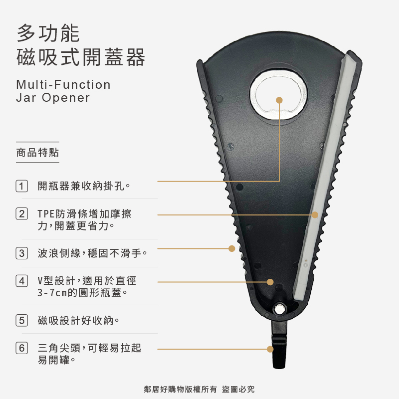 - V型設計,適用於直徑3-7cm的圓形瓶蓋。