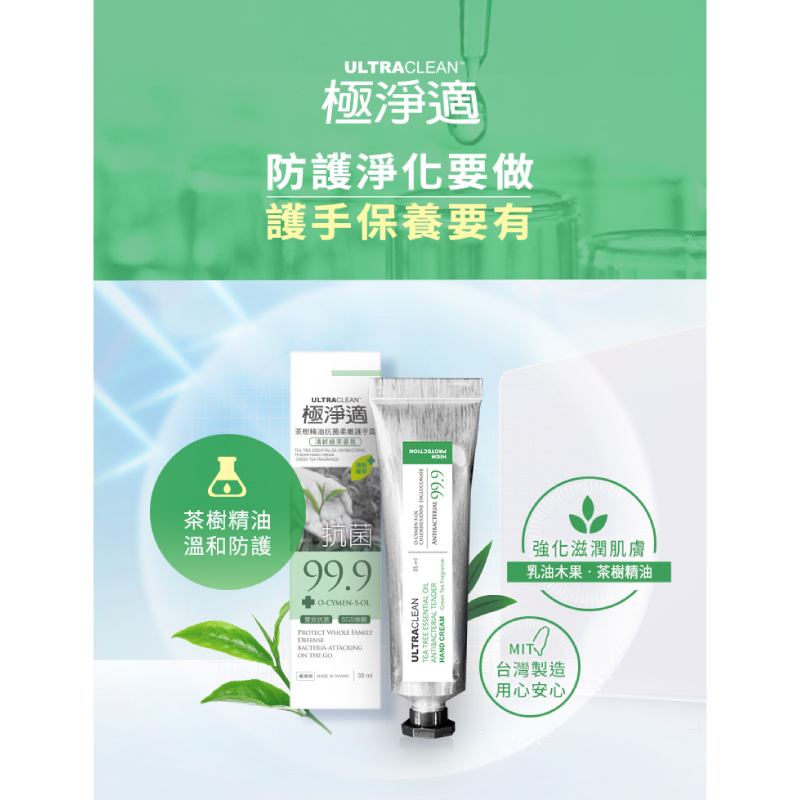 【極淨適】茶樹精油柔嫩護手霜35ml-清新綠茶
