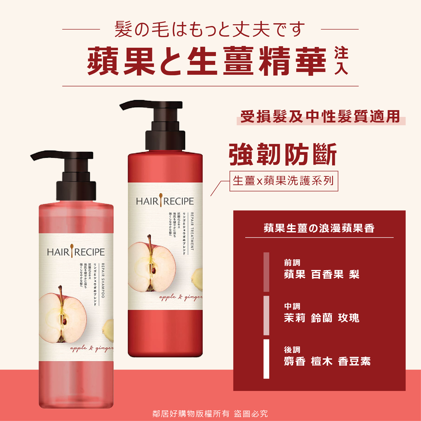 【Hair Recipe 髮の食譜】蘋果生薑防斷修護洗髮露/潤髮乳530ml