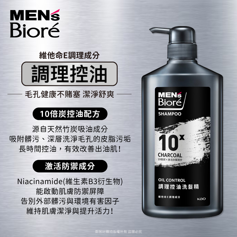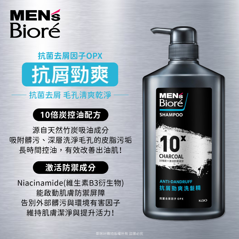 【MEN's Biore】10倍炭男性專用洗髮精750g-(抗屑勁爽/去頭皮味/調理控油)