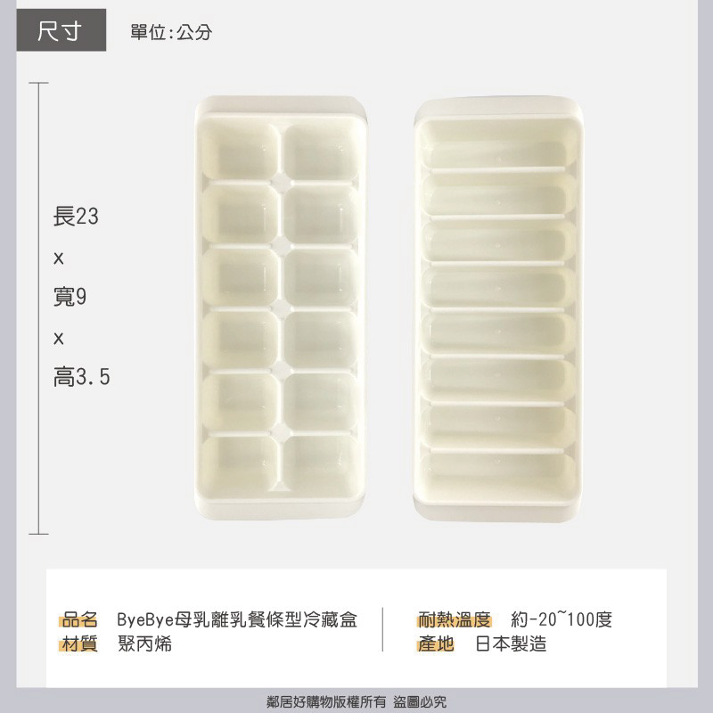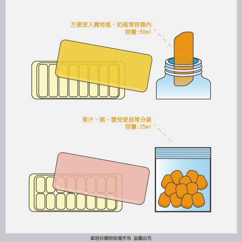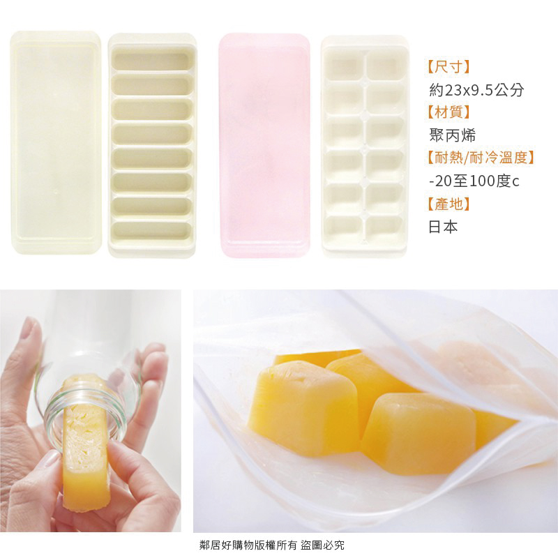 - 小塊狀,方便快速解凍(長條1塊約50ml / 長方形1塊約25ml)