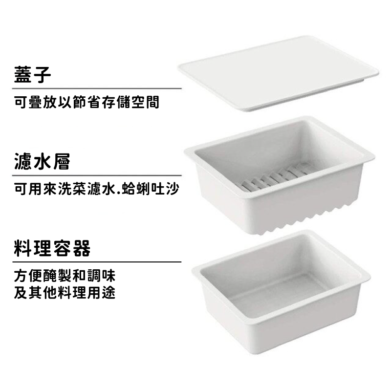 - 多用途-蒸煮、瀝水、蛤蠣吐沙